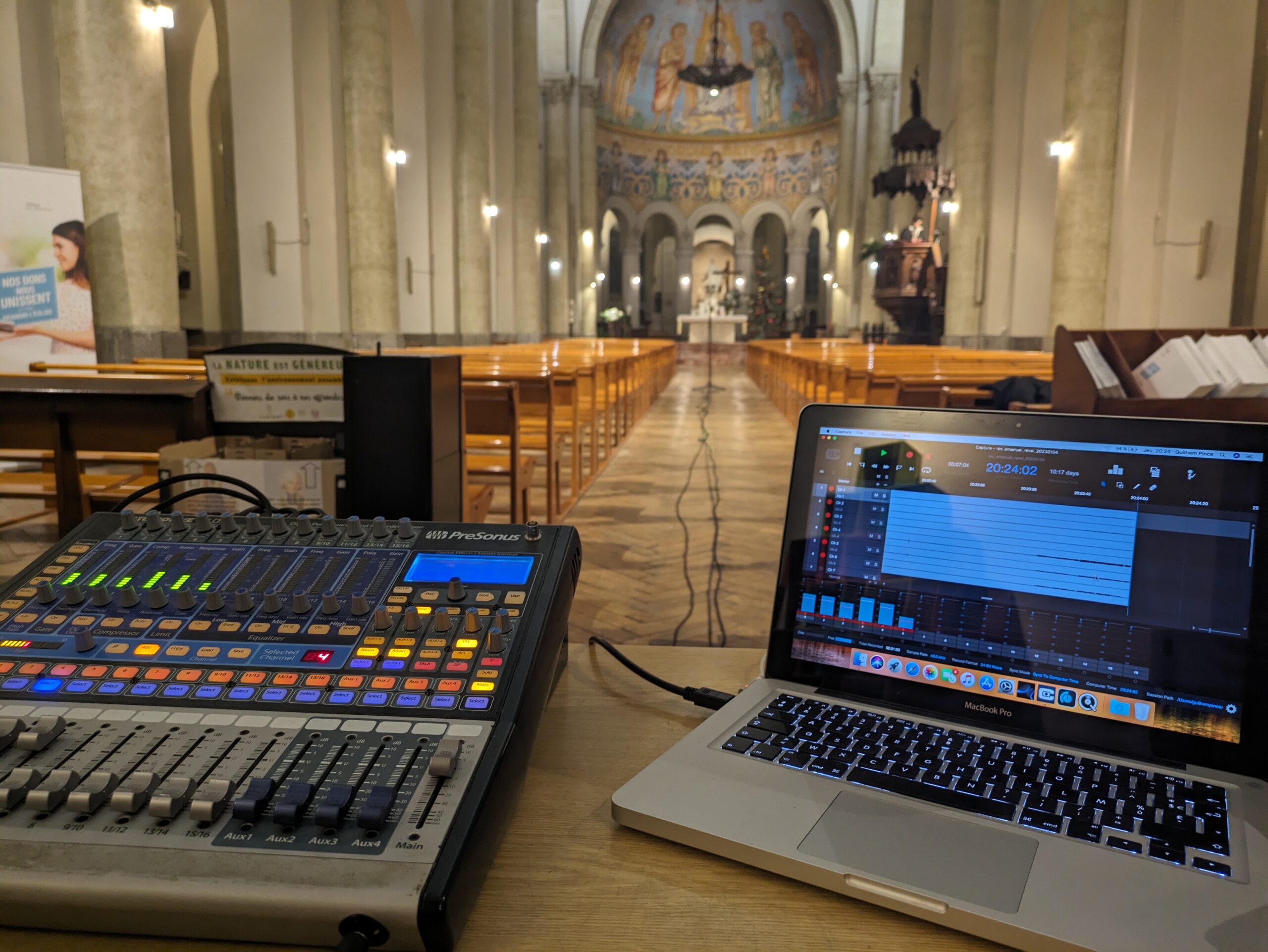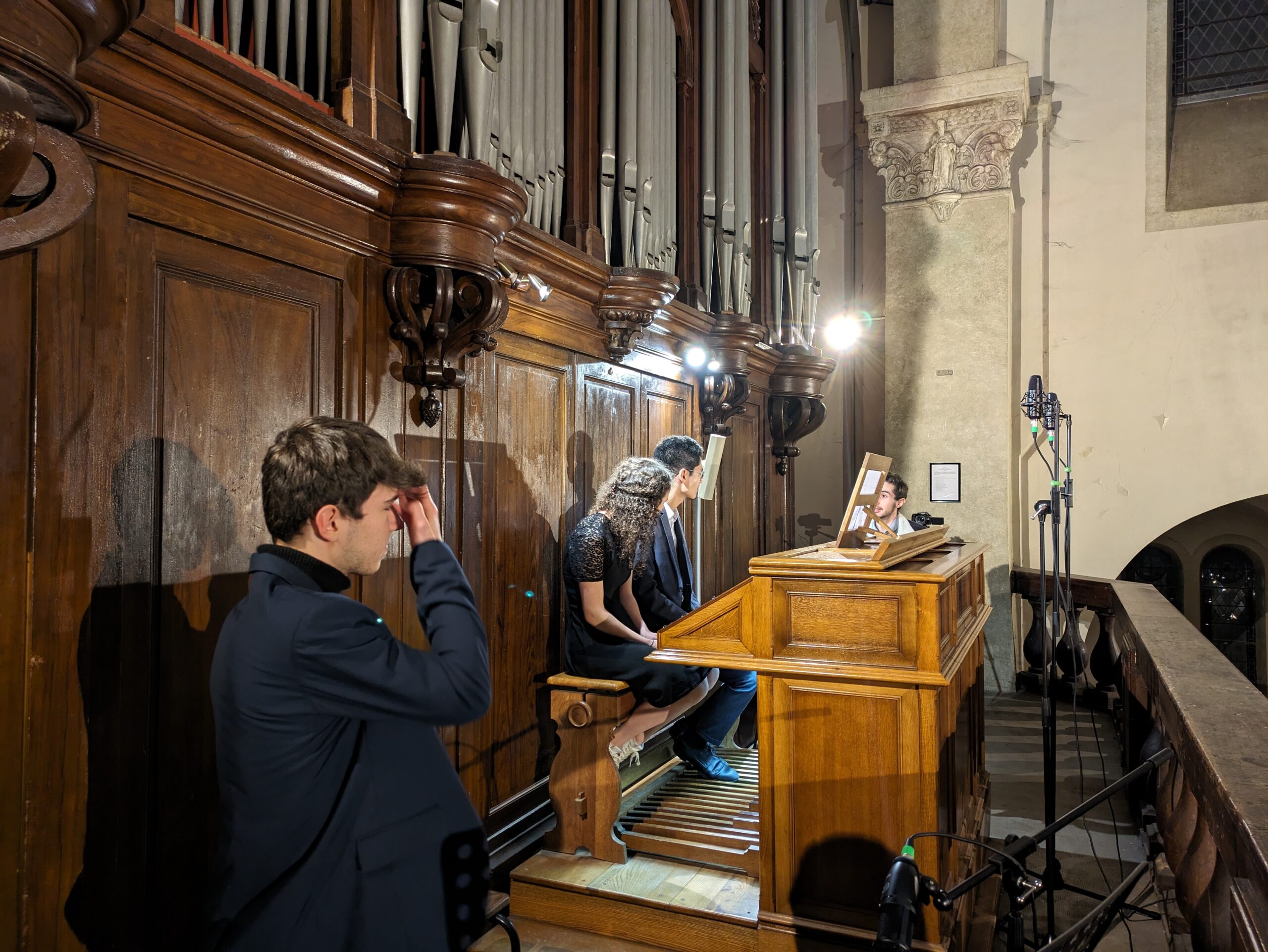 Enregistrement d’une pièce orgue et trompette avec Emanuel Zozor, président de l’association des amis des orgues de Revel, à l’église de Revel le 04/01/2023.